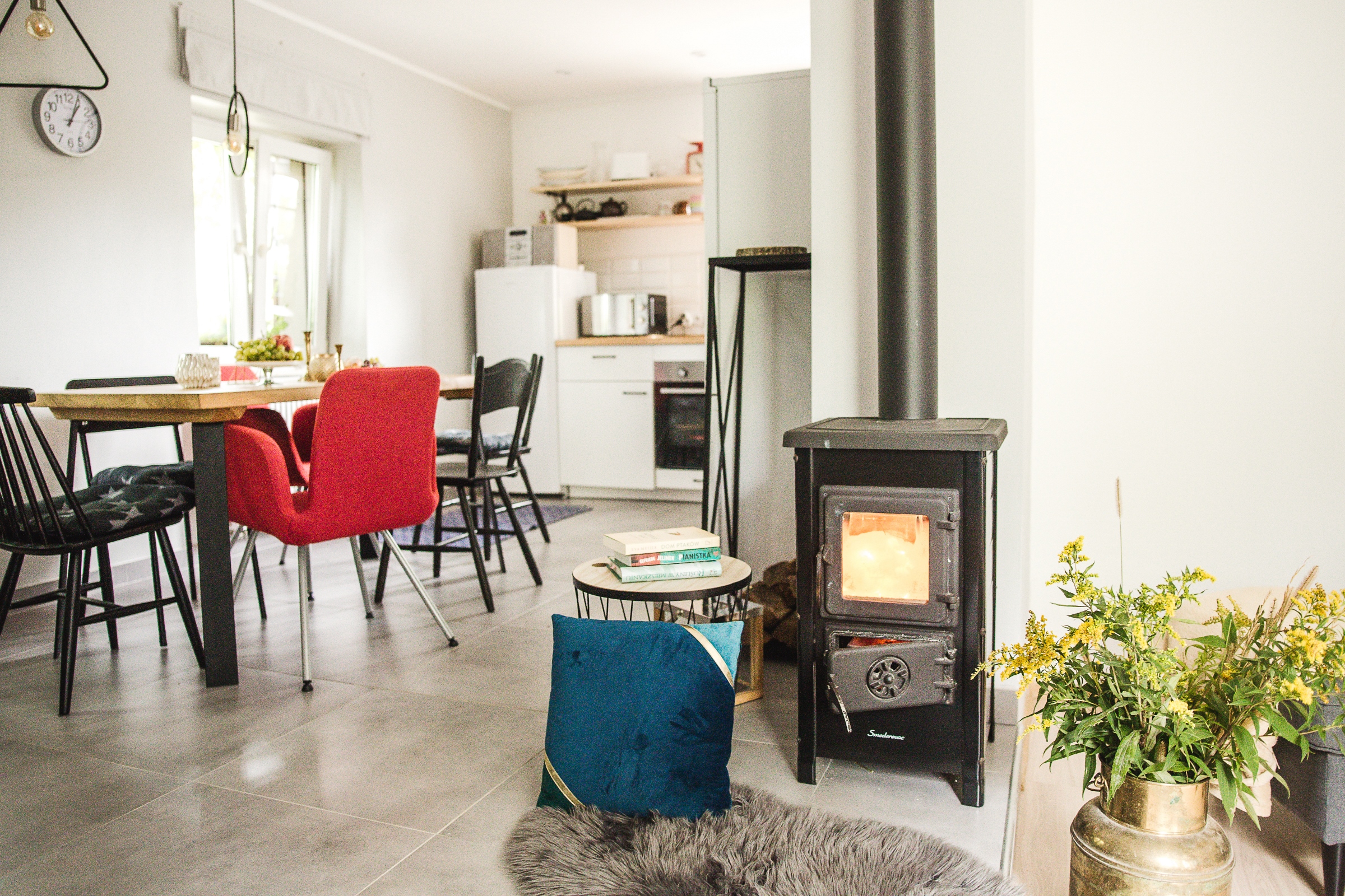 W sezonie grzewczym koza z zapasem suchego drewna i piec elektryczny
